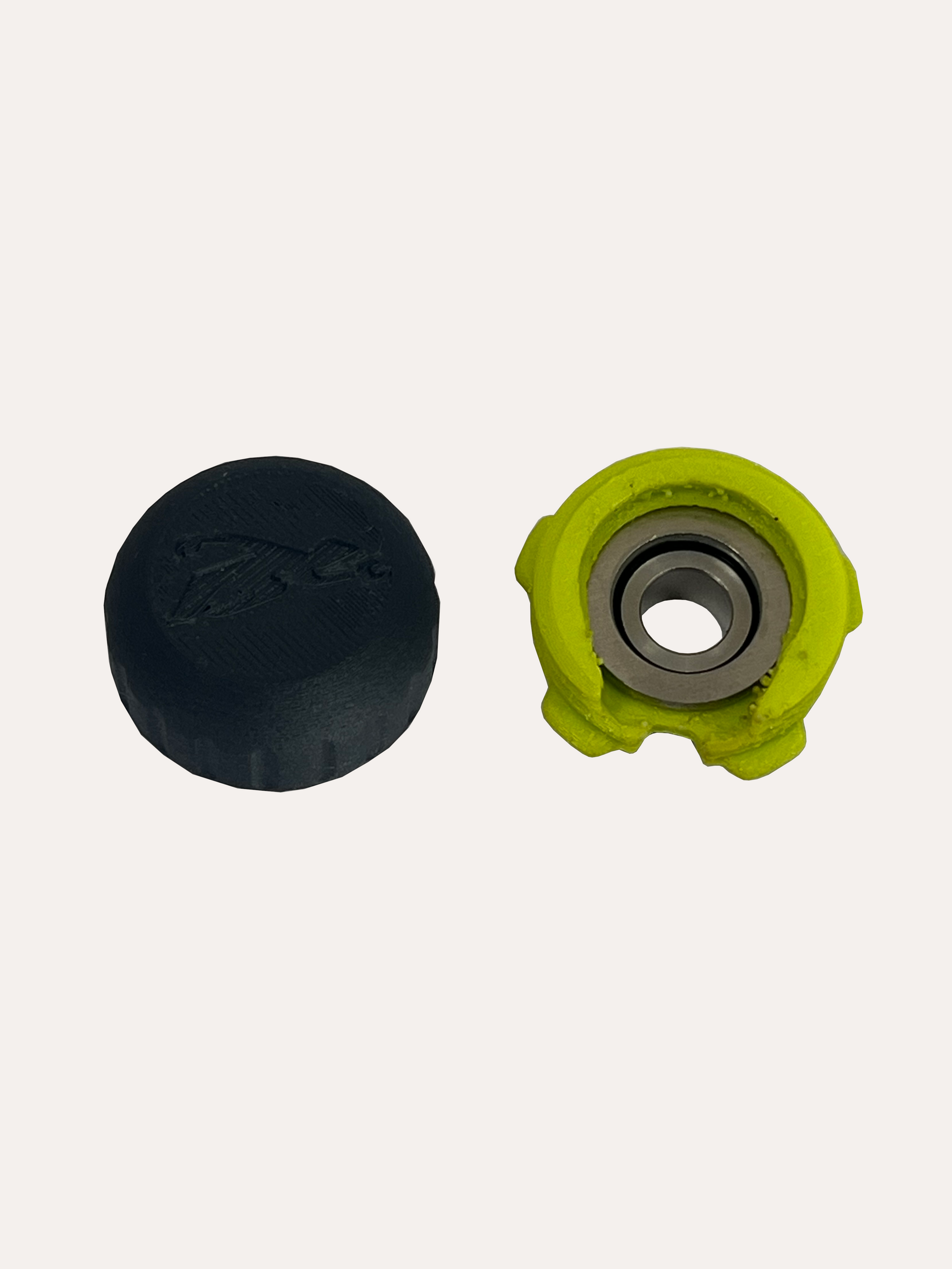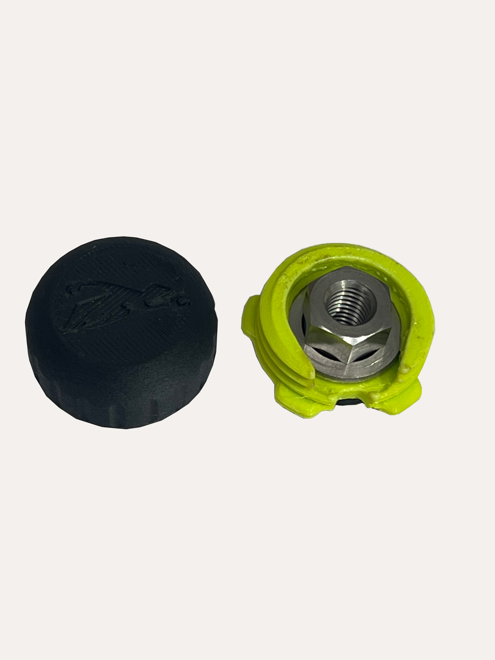 A two-part rubber and moulded design that clamps in place for a secure fit. It incorporates a cut out in the thread so a Rigger Jigger can be used on the top nut.