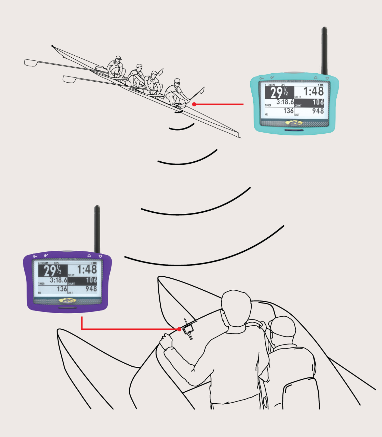 When the supplied antennas are fitted data being monitored by a rower’s ActiveSpeed can be displayed on a coach’s unit. It is also possible to link to an additional five ActiveSpeeds, which the coach can then view the data from by pressing a single button.